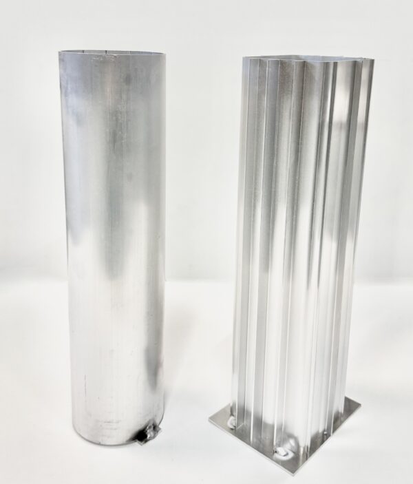 Maahan laitettava holkki, johon lentopallotolpat tulevat. Alumiinia.